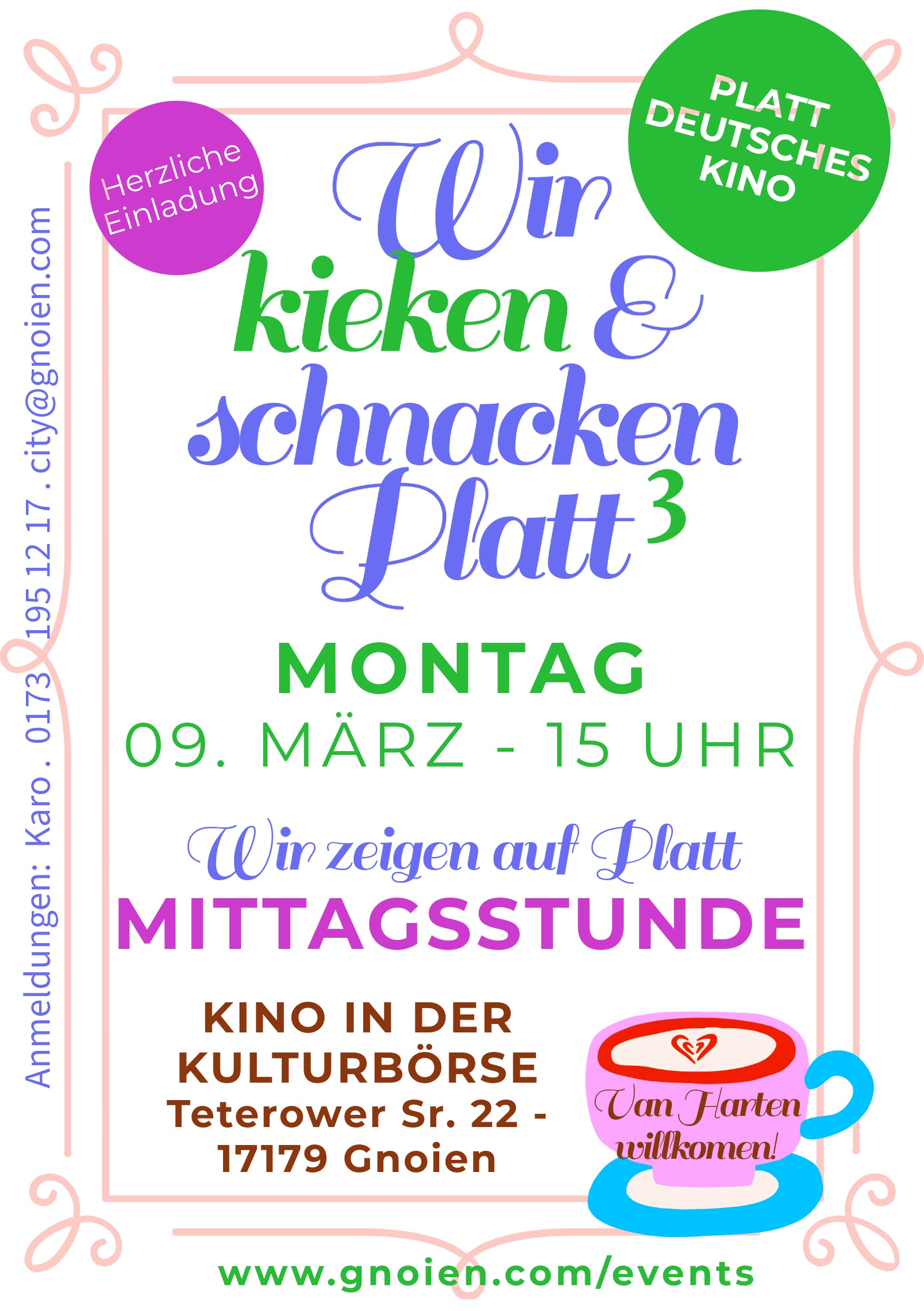 „Wir schnacken Platt“ zum 3. Mal, aber diesmal gehen wir ins Kino und schauen den einzigen Kinofilm den es gibt auf Platt: